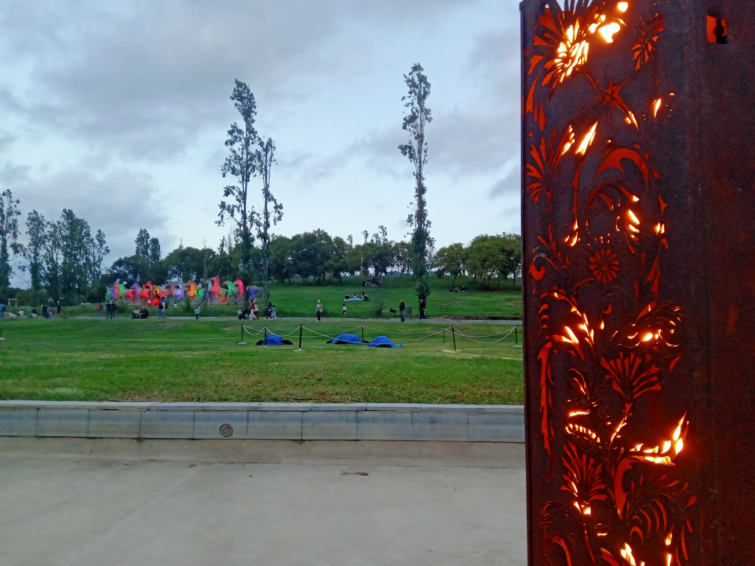 El llac del parc de la Trinitat està tan canviat que no el coneixereu. Hi ha crescut un jardí, però aquí no hi ha clorofil·la ni delicades textures vegetals, sinó que aquestes plantes estan fetes de llum i foc. Escultures brillants, des de flors incendiades fins a joncs flamejants, acompanyen ocells cinètics i meravelles mecàniques, tot, a la llum de les flames i en un entorn ben diferent dels vostres paisatges quotidians.